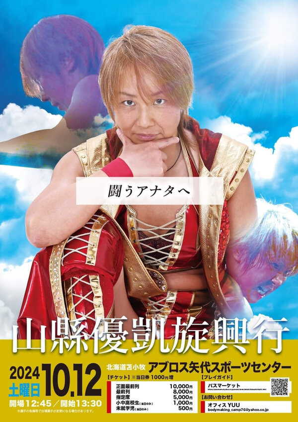 苫小牧市出身の女子プロレスラー山縣優(やまがたゆう)さん(48)=フリー=は苫小牧東高、函館大を経て2000年にデビュー。22年に地元での凱旋興行を初開催し、今年で3回目となる。今回は山縣さんのほか、人気レスラーTAKAみちのくさんや、帯広出身の十文字アキラさんらがリングに上がり、熱戦を繰り広げる。