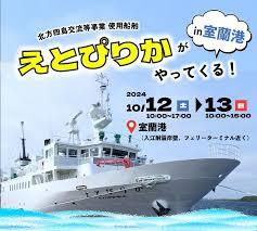 北方四島との交流事業などで使われるチャーター船「えとぴりか」(1124トン、定員84人)を一般公開する。交流事業の拠点の根室港(根室市)以外の道内の港で一般公開されるのは初めて。船内見学やクイズラリーなどを行う。