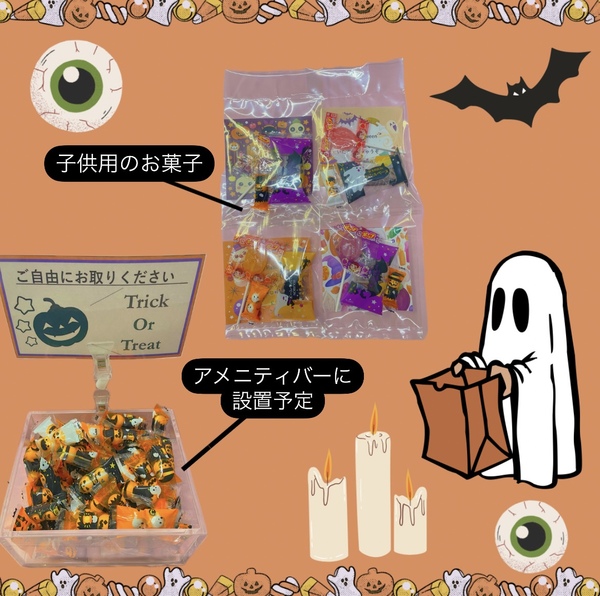 お子様には、袋詰したお菓子をチェックイン時にお渡しさせていただきます◎