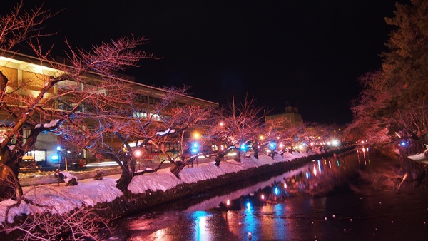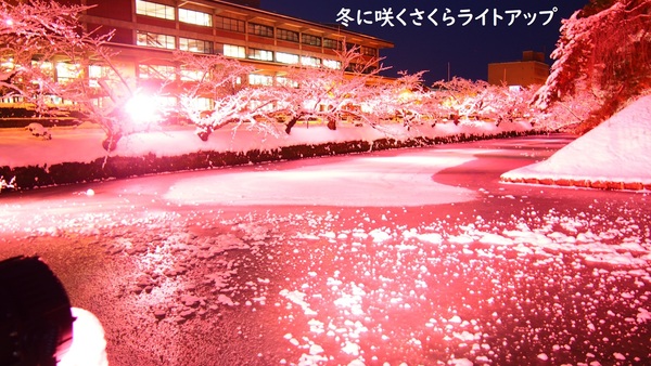 【冬の弘前公園】冬に咲くさくらライトアップ