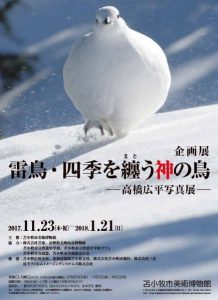 苫小牧出身の写真家による雷鳥の写真展です。日本アルプスの四季を生きる雷鳥の姿を約80点の写真で紹介します。
