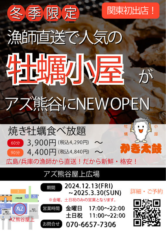 関東発出店!!熊谷になんと〖牡蠣小屋〗が期間限定でございます(^^)/