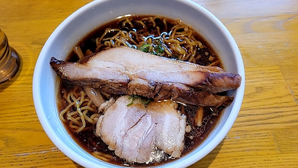 画像は醤油ラーメンで数量限定のかぶりつきチャーシューをトッピングしたものです。