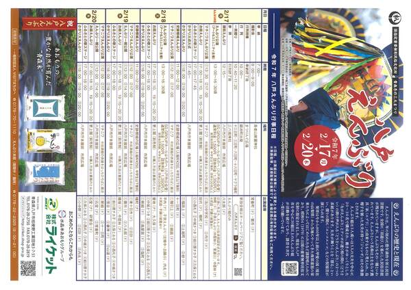 フロントには、VISIT HACHINOHEから、「えんぶり」期間の行事予定や交通規制が掲載されたチラシをご用意しておりますのでご覧下さい。(数に限りがございます)