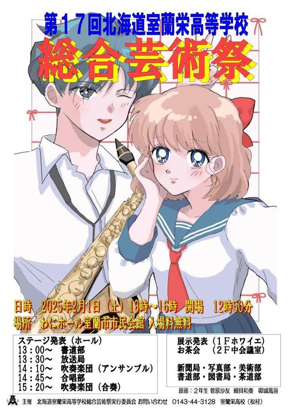 美術部や写真部などの作品を展示するほか、茶道部のお茶会、吹奏楽や合唱の演奏もある。