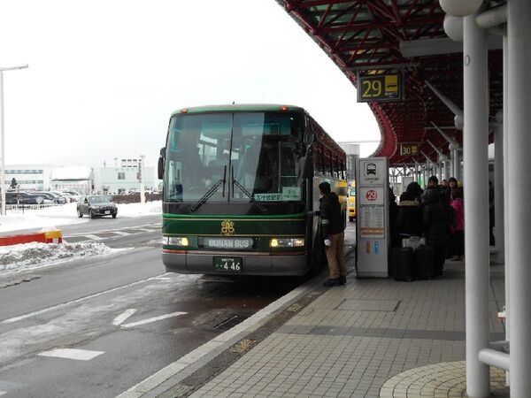 到着口Aゲートを出まして右側、バス停29番乗り場より苫小牧行きの