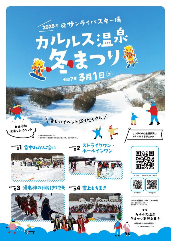 ゲレンデにまかれたみかんを集める「雪中みかん拾い」や湯の守り神「湯鬼神(ゆきじん)」との綱引き対決などを行う。