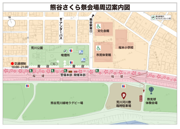 さくらの名所100選にも選ばれている熊谷のさくらは荒川沿いに約2kmも桜が咲いています