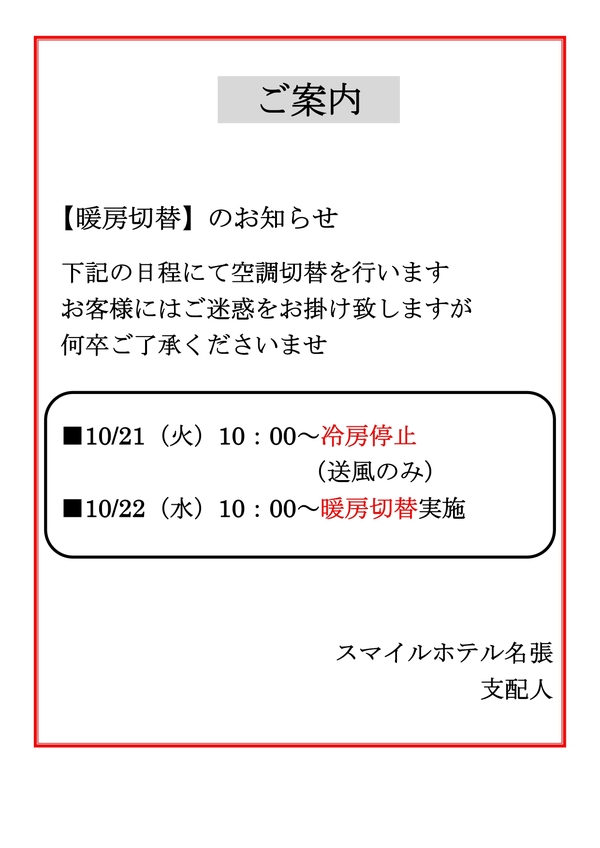 【暖房切替のお知らせ】