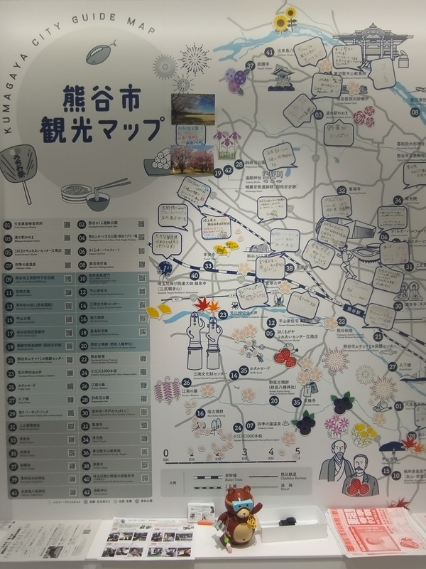 熊谷市のお土産の販売や来場者が記入したおすすめスポットのマップもございます。