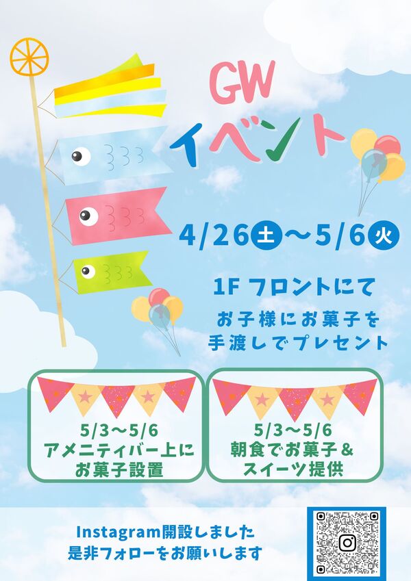 1階フロントにてお子様にお菓子を手渡しでプレゼントいたします。
