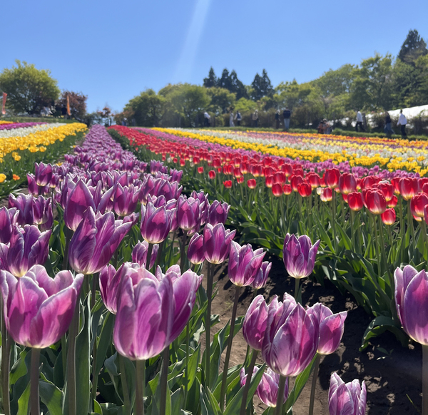 多種多様なチューリップが一面に広がる景色は圧巻です。