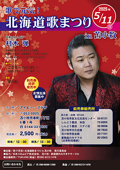 チケット取扱先:しんどう書店本店(苫小牧市新富町1)、苫小牧市文化会館ほか