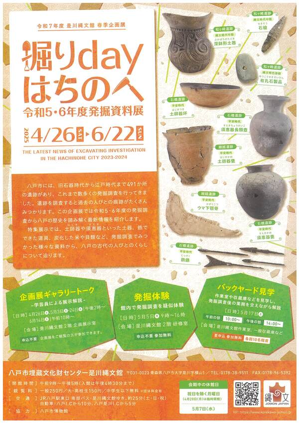 4月26日(土)~6月22日(日)「是川縄文館」では、春季企画展「掘りdayはちのへ 令和5・6年度発掘資料展」が開催中です。