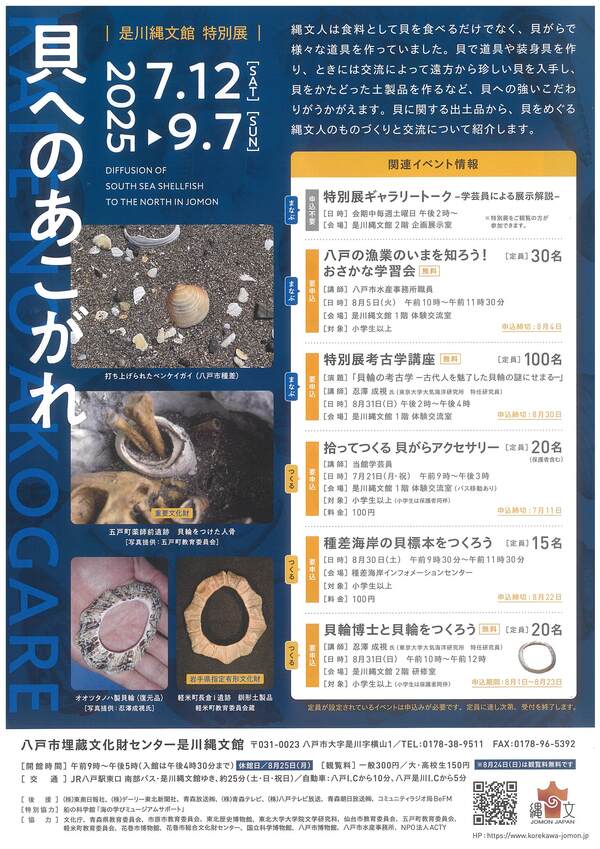 「是川縄文館」では、7月12日(土)~9月7日(日)の期間、特別展「貝へのあこがれ」が開催中です。
