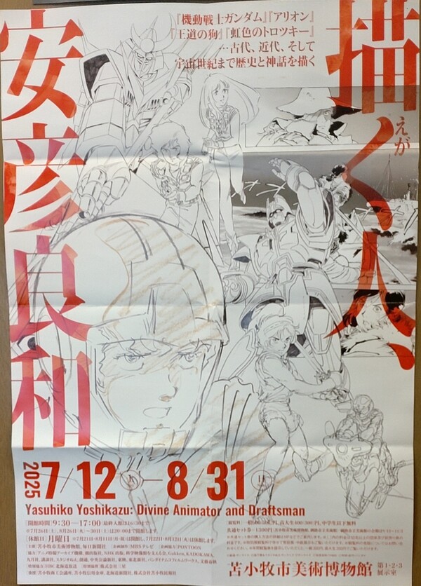 人気アニメ「機動戦士ガンダム」のキャラクターデザインや作画監督を務めた安彦良和さん(77)=オホーツク管内遠軽町出身=の特別展で、昨年6月から行われている全国巡回展の一環。カラーイラストや原画、資料など800点余りを展示。安彦さんの過去から現代までの足跡をたどることができる。