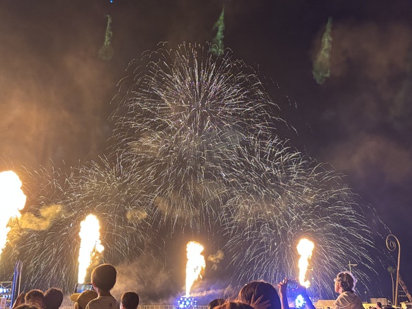 音楽に合わせて花火が打ち上がり、炎の演出もありで迫力がすごかったです!