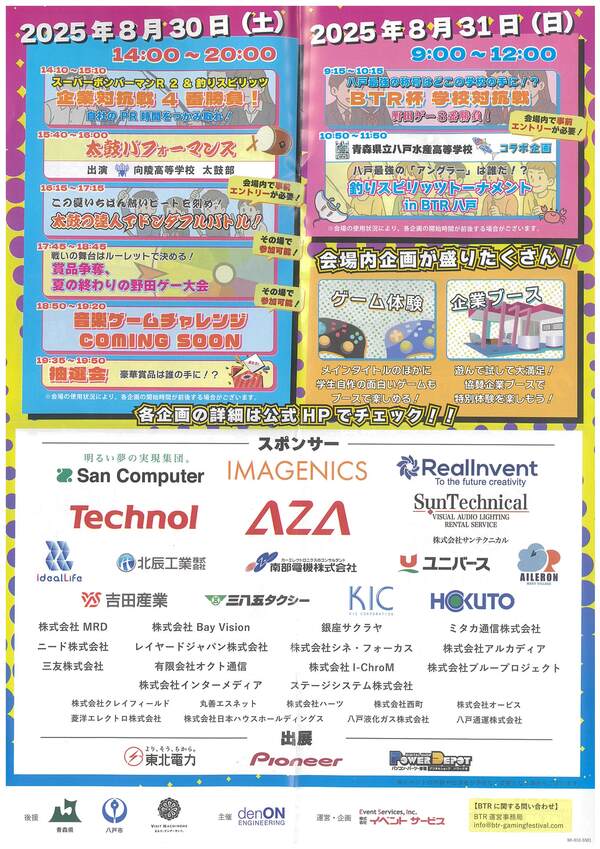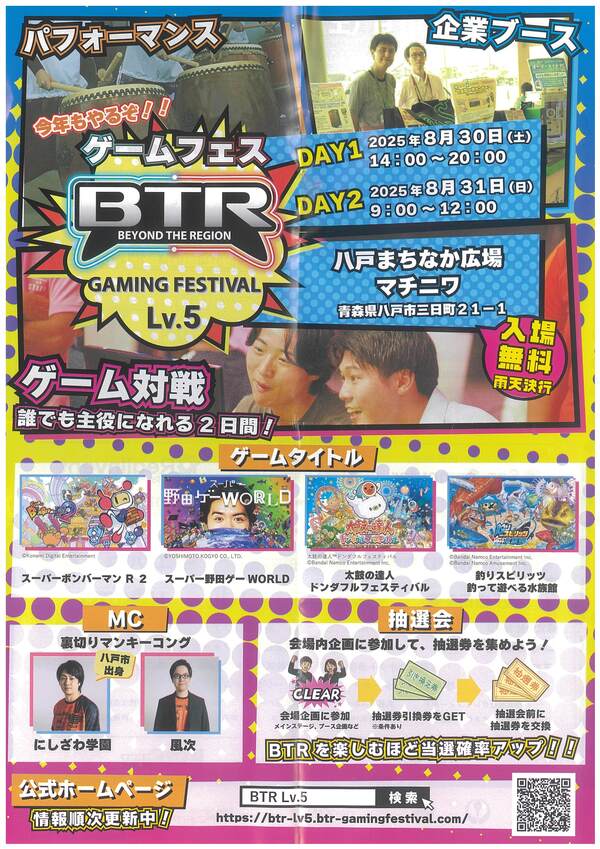 8月30日(土)・31日(日)に「BEYOND THE REGION GAMING FESTIVAL Lv.5」が、今年は、「八戸まちなか広場マチニワ」で開催されます。