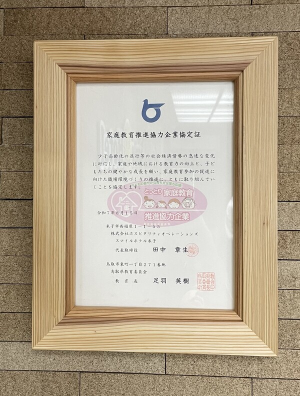 家庭教育推進協力企業協定証をいただきました