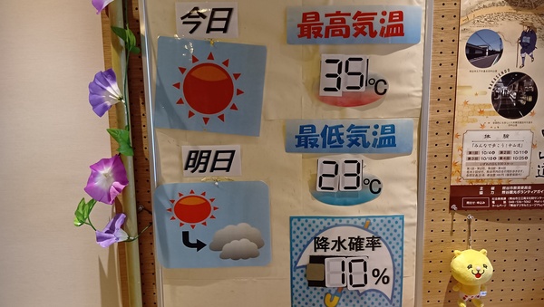 本日の熊谷市の気温は、最高気温摂氏35度、最低気温摂氏23度となっております。