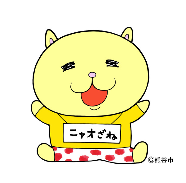 ニャオざねの名の由来は、ねこの鳴き声に熊谷の武将「熊谷次郎直実(くまがやじろうなおざね)」公をプラスして『ニャオざね』です。