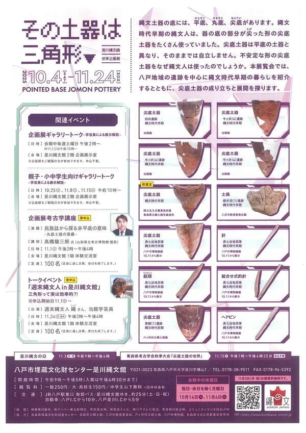 10月4日(土)~11月24日(月)の期間、「是川縄文館」では、「秋季企画展 その土器は三角形▼」が開催されます。