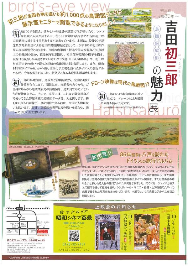 10月18日(土)~11月24日(月)の期間、「八戸クリニック街かどミュージアム」では、「2025年秋期展 没後70年 鳥瞰図絵師 吉田初三郎の魅力展」が開催されます。