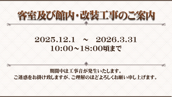 【重要】2025.12.1~2026.3.31 客室及び館内 改装工事のご案内