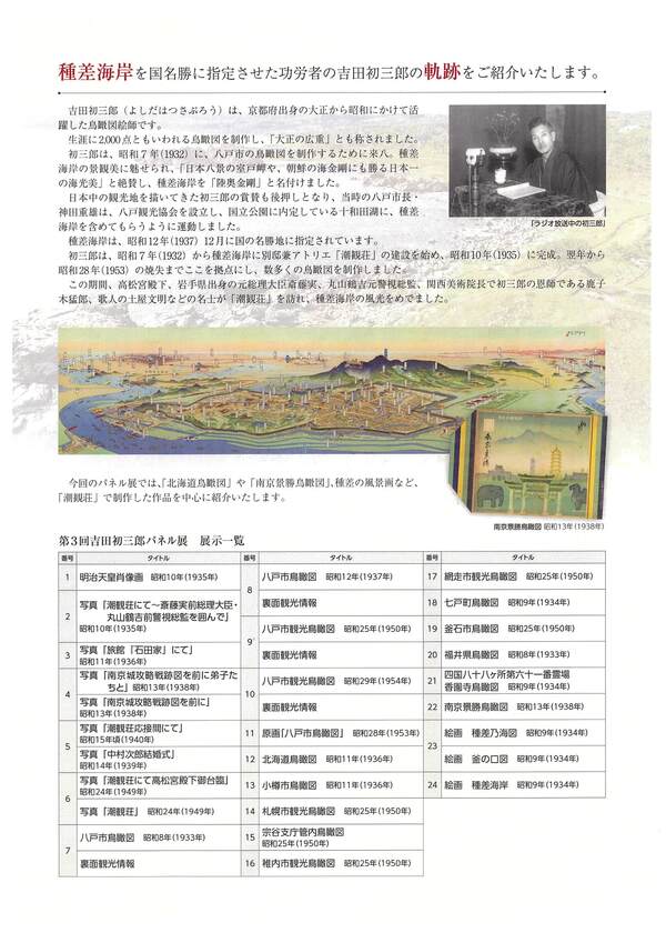 11/10(月)~21(金)に「八戸市美術館 スタジオ」で、「鳥瞰図絵師 吉田初三郎 第3回パネル展」が開催されます。