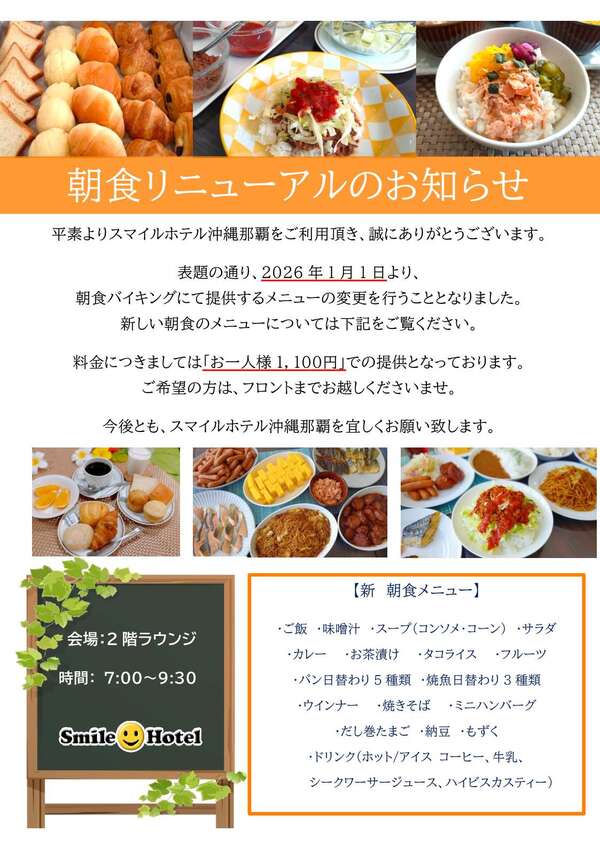 朝食リニューアルのお知らせ