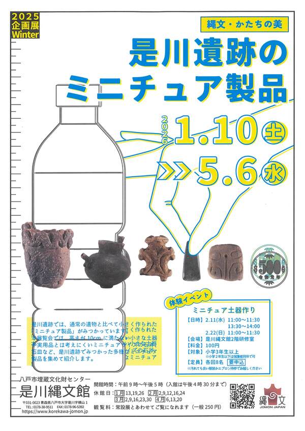 1月10日(土)~5月6日(水)の期間、是川縄文館では、「縄文・かたちの美-是川遺跡のミニチュア製品-」が開催されます。
