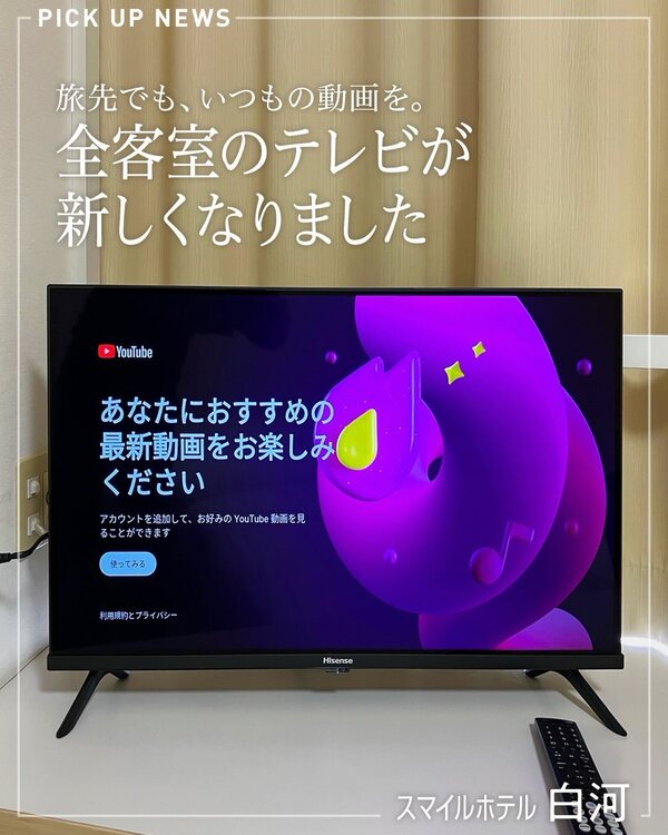 全客室のテレビがサブスク対応テレビへリニューアル。