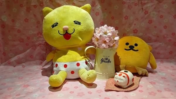 桜満開春爛漫の中、熊谷市の次期市長の座を狙うゆるキャラ日本代表ニャオざね氏とマメタロウが桜と共にニッコリしているではありませんか!