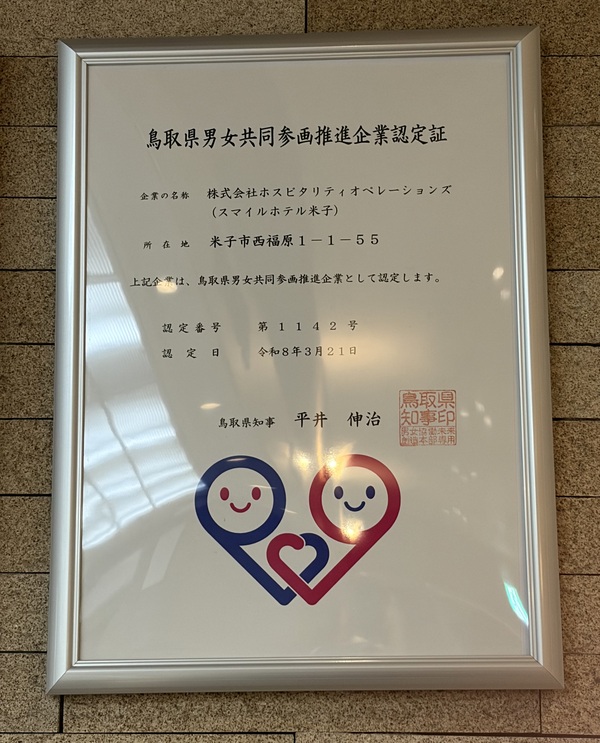 このたび、鳥取県より「男女共同参画推進企業」として認定をいただきました。
