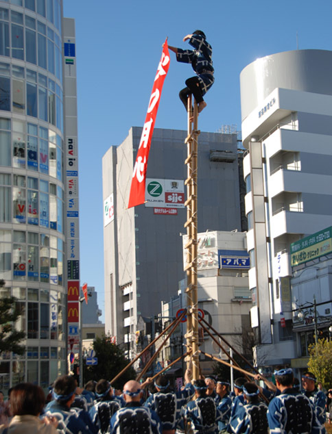 ちなみに出初式とは、江戸時代末期から町火消の役を受け継いだ鳶とび職人が、人々から厚い信任を受けて、その敏捷びんしょうかつ俊敏な動作で町を火災から守り、誇りをもって纏まといを受け継いできました。14番組まで結成された「熊谷鳶」が、初春にはしご乗りの妙技を見せて下さいます!!