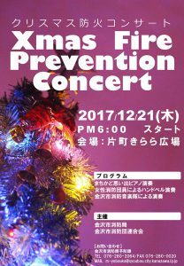 さて、12月21日に複合商業施設「片町きらら」の広場で消防音楽隊の演奏や
