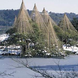 兼六園では、11月1日より「雪吊り」作業が行われています。