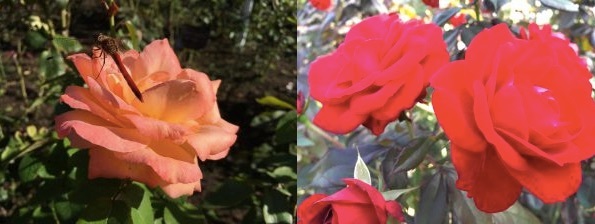 ふと見ると花びらにトンボがとまっており、季節は秋だなと感じたひと時でした。