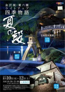 本日8月10日~12日の3日間 兼六園と金沢城、玉泉院丸庭園の3会場でライトアップが行われます。