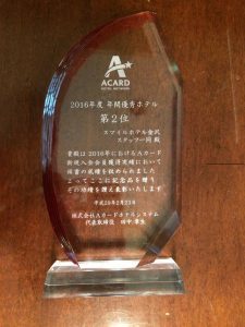 Aカード獲得 2016年度 年間優秀ホテル 第2位 を頂きました。