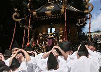 約1トンの神輿が塩竈市内を巡幸後、塩竈神社表坂202段の急勾配を還御する光景は感動もの。