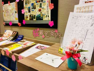 この辺り周辺では桜も咲き始め、当館のご案内は桜の折り紙などで装飾を施しています。