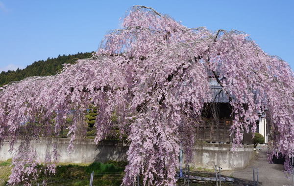 利府町春日地区の大山邸地内にある樹齢200年以上(推定)のベニシダレザクラ。