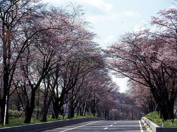 JR登別駅から温泉街までの8kmの沿道には約2000本のエゾヤマザクラが立ち並び、例年5月上旬に温泉街へ向かう道道2号線が花のトンネルで覆われます。