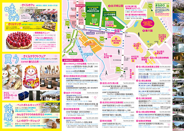 4月7日~8日にさくらをテーマとしたイベントがしいのき緑地・いしかわ四高記念公園・本多の森公園を中心に開催されます!「桜」をキーワードに味わう・聴く・買う・巡るといった企画を予定しています。桜や春にちなんだメニューを販売するさくらカフェや、金沢料亭が作るお花見弁当など内容盛りだくさんのイベントです(^.^)明日明後日と小雨の予報が出ていますが、半日曇りや晴れの時間帯もございますので、雨が少しでも雨が降っていないお時間に行かれるのをおススメ致します。桜が散る前に金沢にてこの春、お花見を楽しんでみてはいかがでしょうか?