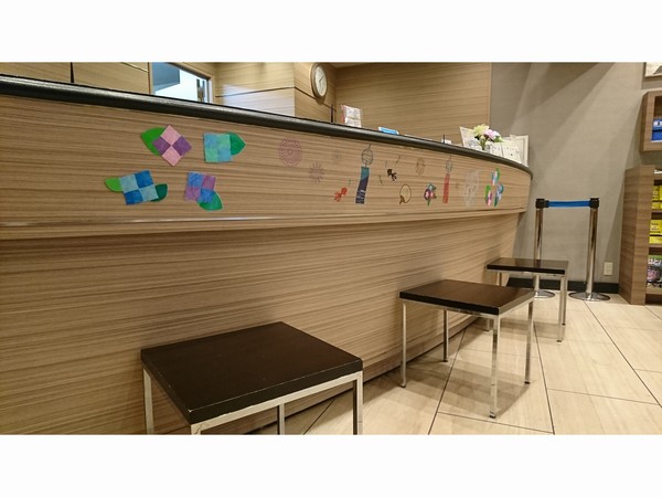 案内ブースやフロントを折り紙などで装飾しました。