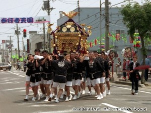 八雲神社で執り行われる例大祭にあわせて商工会の主催で行われるお楽しみイベント。町のメイン道路を開放して、様々なゲームやパフォーマンスが行われ、一日中賑わいます。転がり出る玉がバレーボールというジャンボビンゴゲームは景品総数100本、10万円相当の旅行券や家電なども当たる豪華版となっています。また、恒例の玉入れ大会は優勝チームに6万円の賞金!応援も盛り上がります。20日~22日の八雲神社例大祭期間中、露店約80店が出店しています。