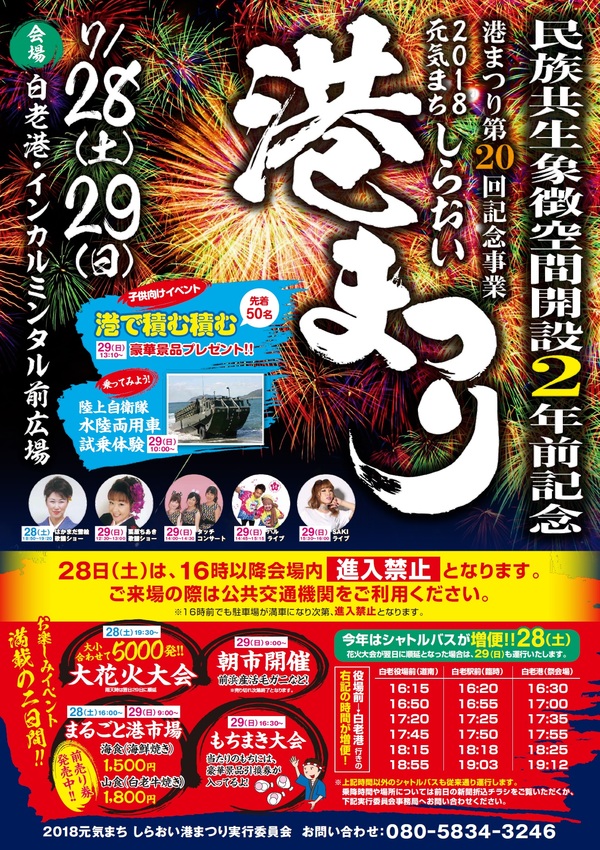 白老牛やタラコ、ホッキ貝に毛ガニ…などなど、全国的にも食通をうならせる食材の宝庫・白老町の夏の一大産業まつり「元気まちしらおい港まつり」が7月28日(土)と29日(日)に開催されます。28日には踊りパレードや吹奏楽の演奏、29日には餅まき大会やコンサート、朝市(9時~)など楽しいイベントが目白押し!「まるごと港市場」では白老牛と海産物を焼いて食べるコーナーが設置され、北海道の美味しさが白老に大集結する、お腹いっぱい大満足のお祭りです。