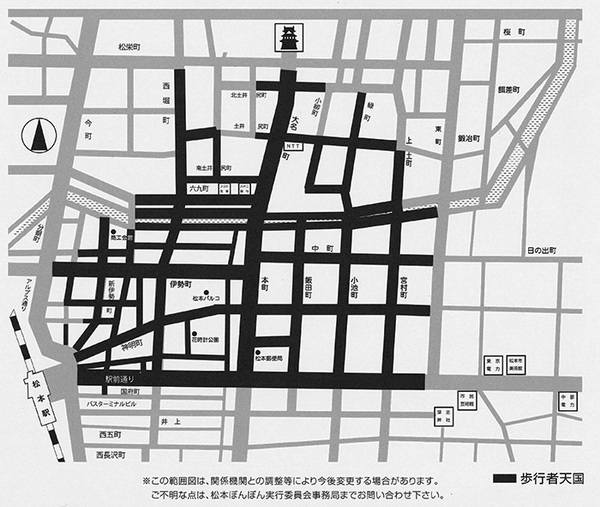 毎年松本ぼんぼんでは歩行者天国となり交通規制が行われますので