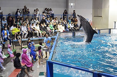 イルカたちが目の前で大きくジャンプして、その豪快な水しぶきを観客席にプレゼントする夏限定のイベント。プールサイドの特別席に座ると、わやぬれ(北海道弁で「めちゃめちゃ濡れること」)間違いなしなので、着替えやタオルの準備を忘れずに。もし忘れた場合でも会場で雨合羽の販売があるので安心だ。また、年ごとに違うデザインが販売される「わやぬれ祭り」オリジナルTシャツとタオルは、毎年大人気でお盆前には売り切れるため、早めに手に入れたい(数量限定、なくなり次第販売終了)。